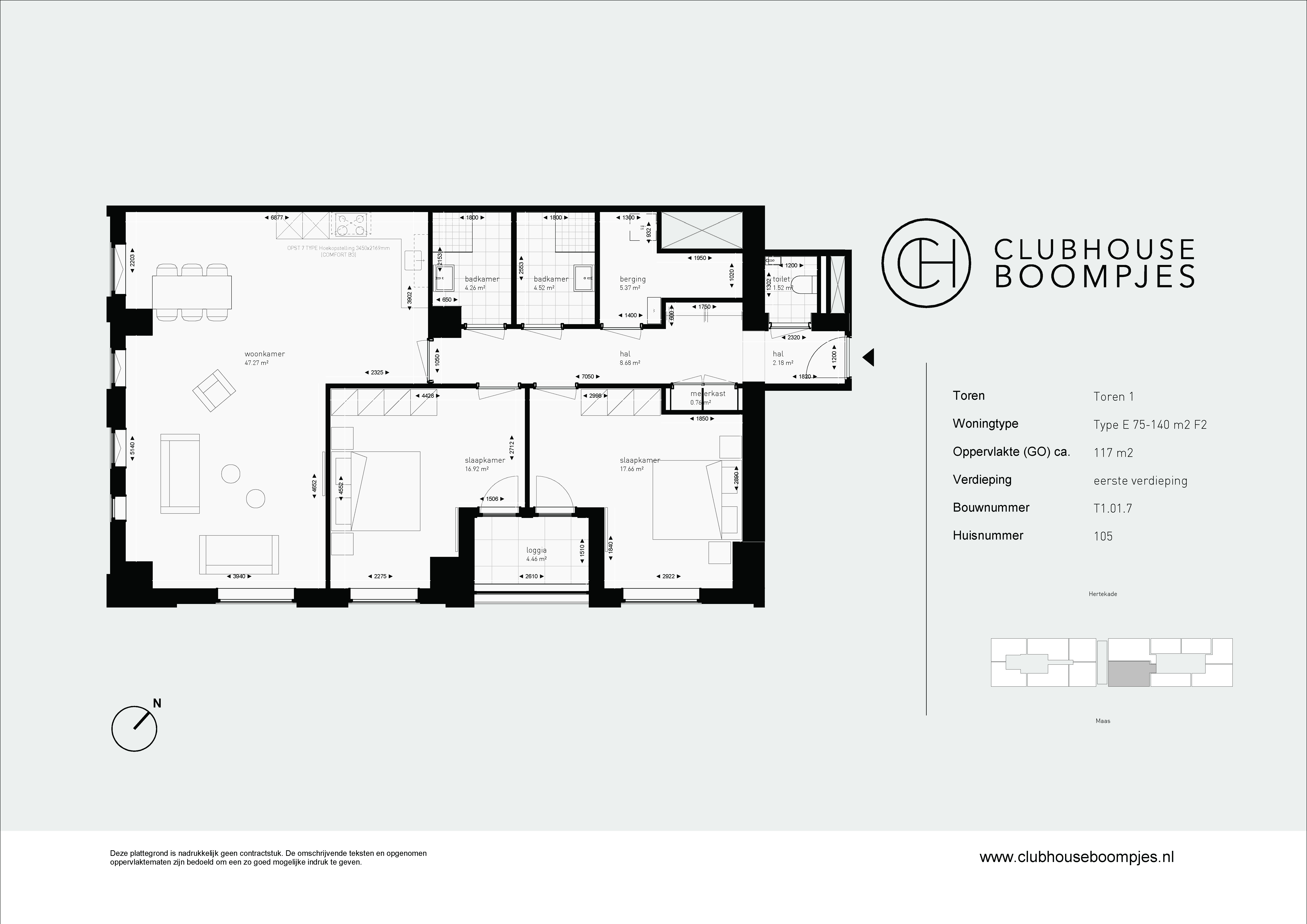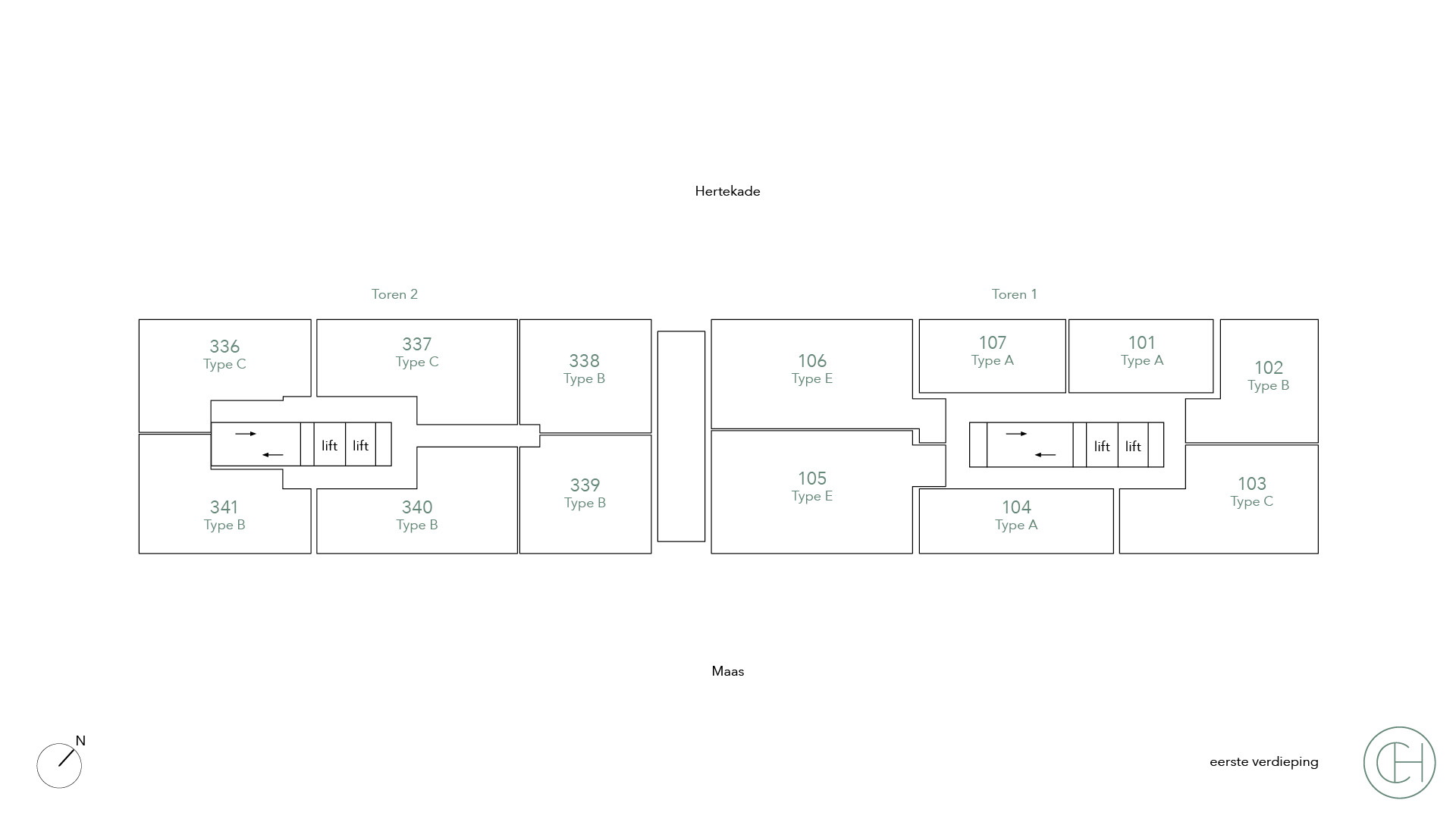 De appartementen type E variëren in grootte van 75 tot maar liefst 140 vierkante meter. Deze luxe appartementen met drie kamers zijn van alle gemakken voorzien. Met twee ruime slaapkamers met een eigen badkamer is er voldoende ruimte, privacy en comfort. De ruime woonkamer biedt plaats aan een gezellige zithoek, en de keuken is uitgerust met moderne apparatuur. In sommige appartementen is de keuken deels afgesloten, wat de mogelijkheid biedt voor een aparte eetkamer. Een mooi balkon met een prachtig uitzicht maakt deze appartementen helemaal compleet. Een ideale plek om te ontspannen na een lange werkdag of om samen met vrienden van een gezellige borrel en de prachtige skyline van Rotterdam te genieten.