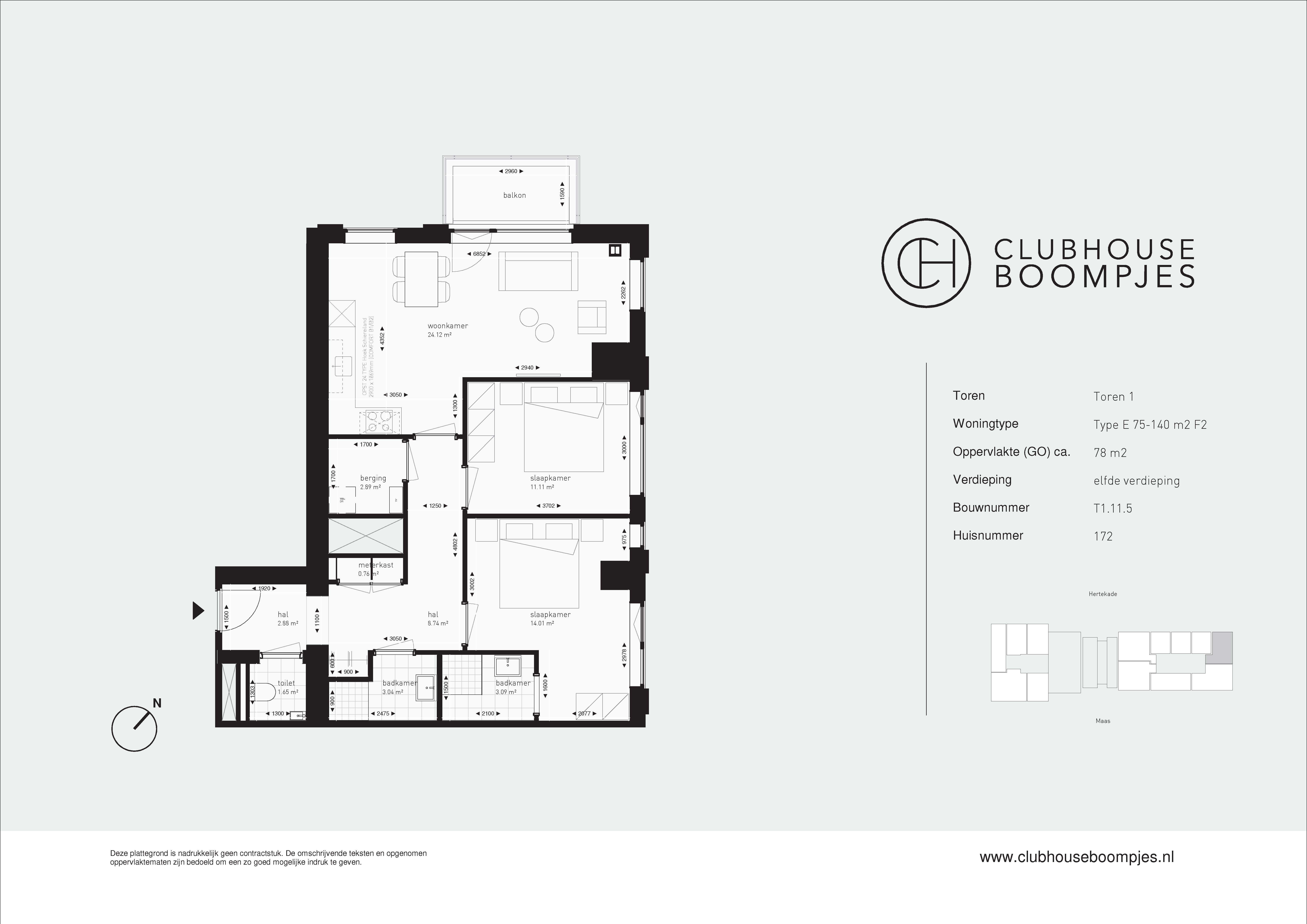 De appartementen type E variëren in grootte van 75 tot maar liefst 140 vierkante meter. Deze luxe appartementen met drie kamers zijn van alle gemakken voorzien. Met twee ruime slaapkamers met een eigen badkamer is er voldoende ruimte, privacy en comfort. De ruime woonkamer biedt plaats aan een gezellige zithoek, en de keuken is uitgerust met moderne apparatuur. In sommige appartementen is de keuken deels afgesloten, wat de mogelijkheid biedt voor een aparte eetkamer. Een mooi balkon met een prachtig uitzicht maakt deze appartementen helemaal compleet. Een ideale plek om te ontspannen na een lange werkdag of om samen met vrienden van een gezellige borrel en de prachtige skyline van Rotterdam te genieten.