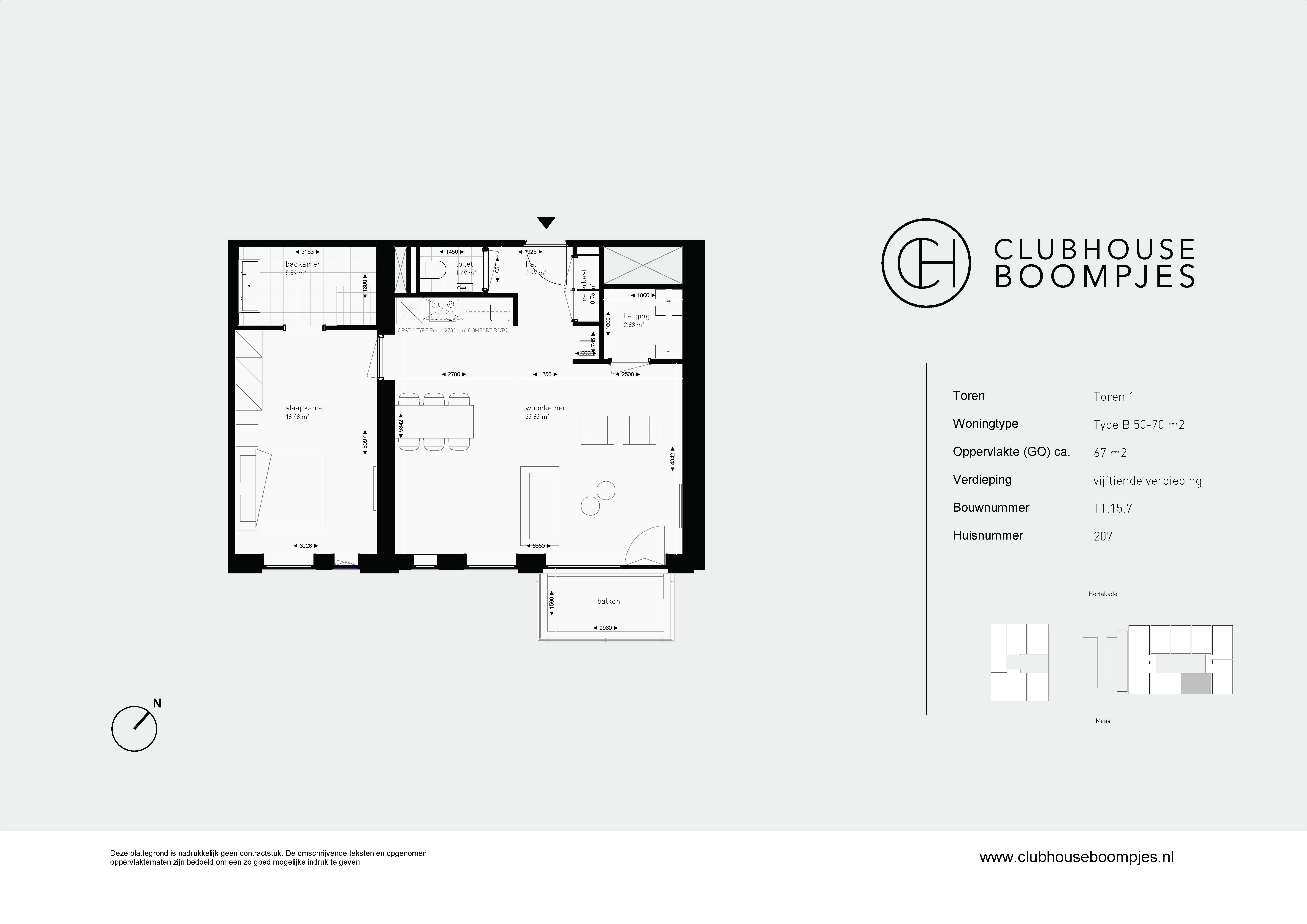 De type B appartementen zijn aangename en lichte tweekamerappartementen van 50 tot ongeveer 70 vierkante meter groot. Veel van deze appartementen bevinden zich op de hoek van een van de torens, waardoor je zowel uitzicht hebt op de Maas als op het stadscentrum. Dankzij de hoekligging geniet je hier van extra veel lichtinval. De appartementen hebben een ruime slaapkamer met een mooie badkamer, inclusief een moderne douche en wastafel. De woonkamer en open keuken vormen één geheel, met voldoende ruimte voor een comfortabele zithoek en een gezellige eethoek. En vanaf je eigen balkon of loggia geniet je hier altijd van een prachtig uitzicht!