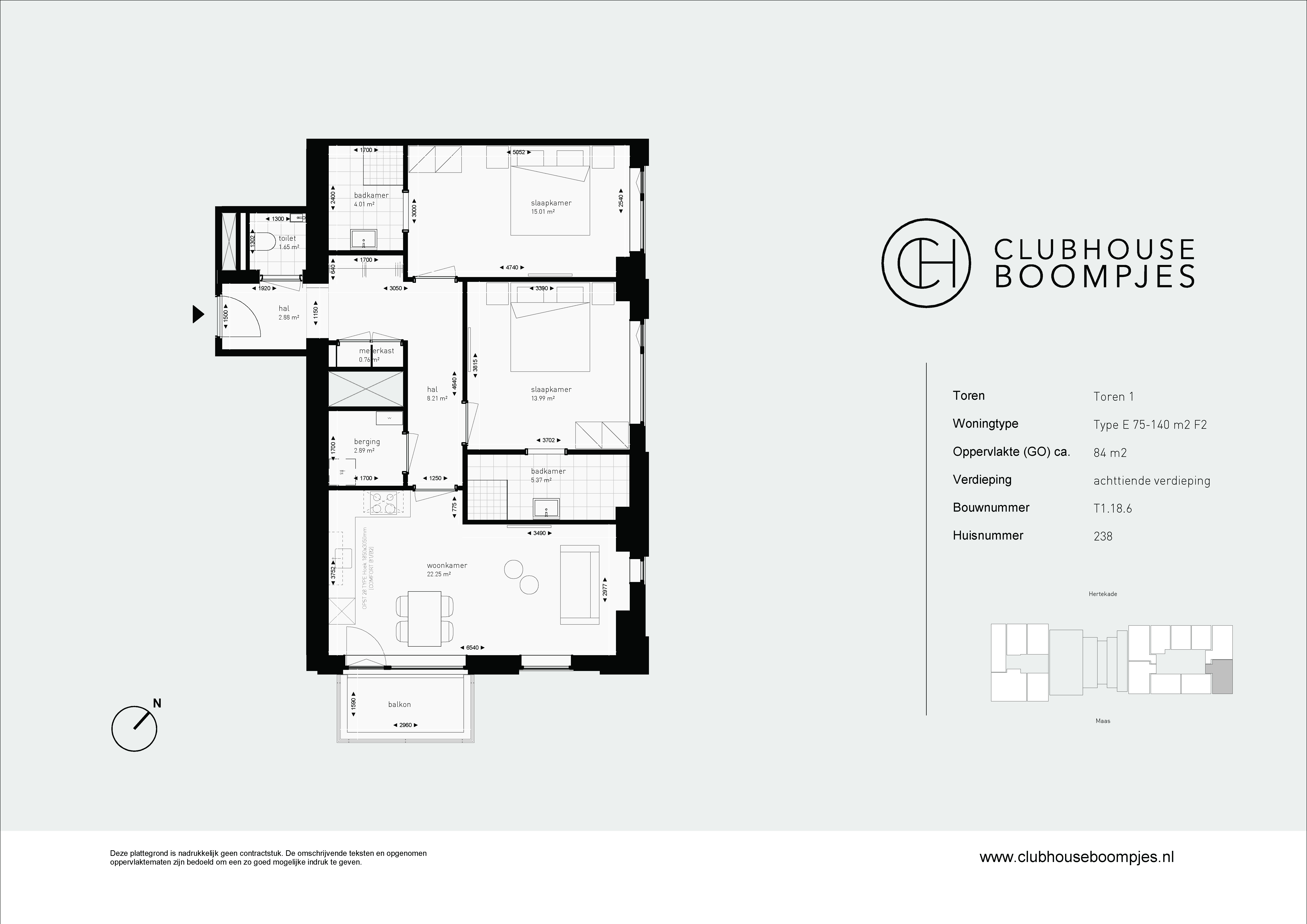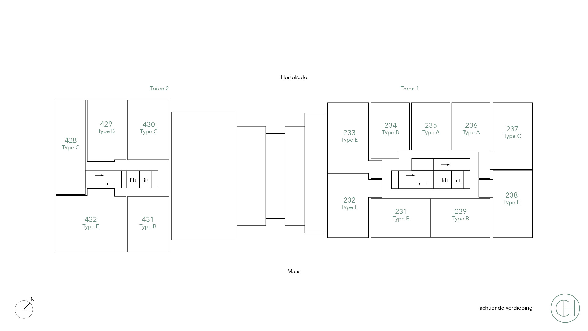 De appartementen type E variëren in grootte van 75 tot maar liefst 140 vierkante meter. Deze luxe appartementen met drie kamers zijn van alle gemakken voorzien. Met twee ruime slaapkamers met een eigen badkamer is er voldoende ruimte, privacy en comfort. De ruime woonkamer biedt plaats aan een gezellige zithoek, en de keuken is uitgerust met moderne apparatuur. In sommige appartementen is de keuken deels afgesloten, wat de mogelijkheid biedt voor een aparte eetkamer. Een mooi balkon met een prachtig uitzicht maakt deze appartementen helemaal compleet. Een ideale plek om te ontspannen na een lange werkdag of om samen met vrienden van een gezellige borrel en de prachtige skyline van Rotterdam te genieten.