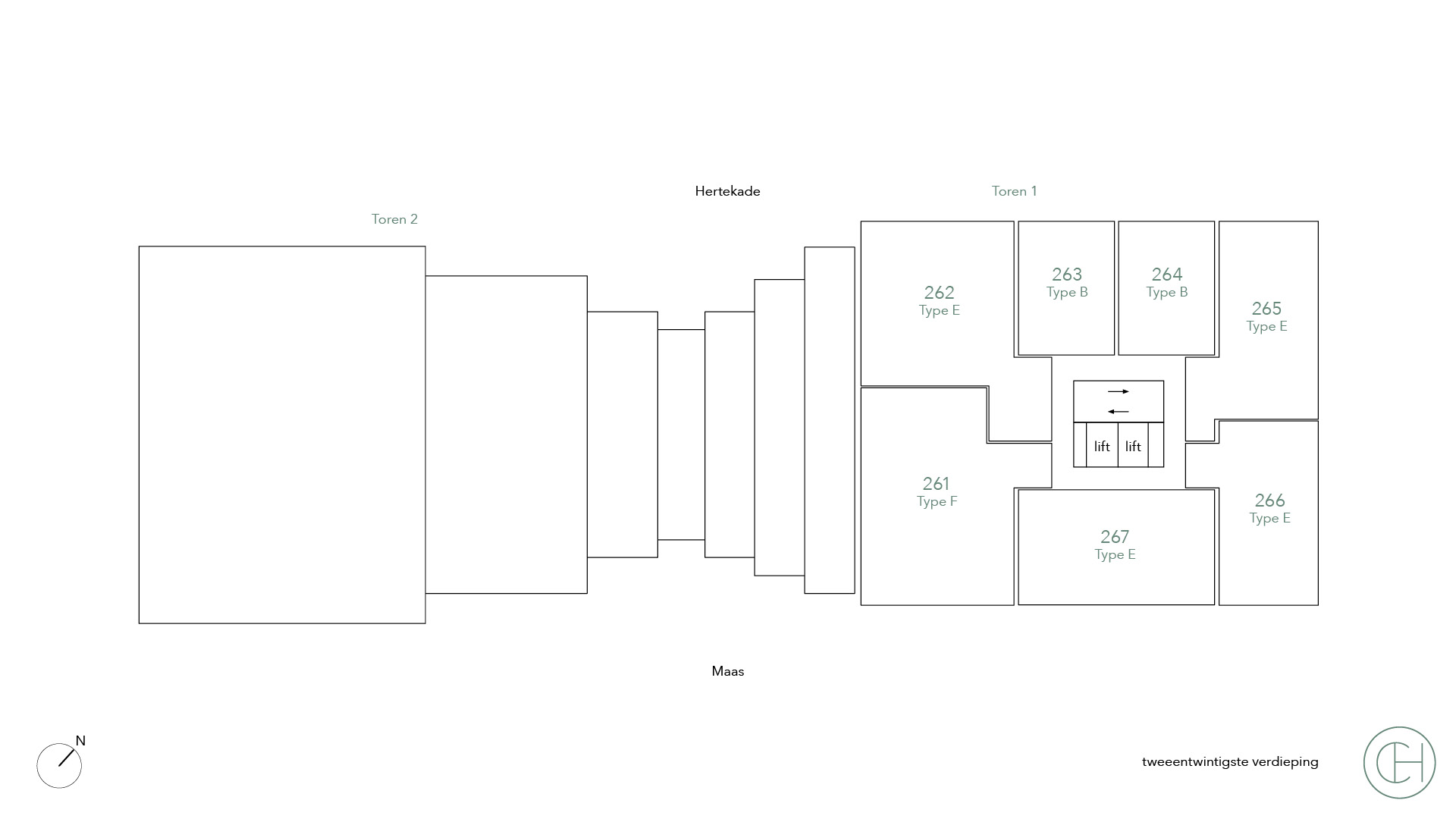 De type B appartementen zijn aangename en lichte tweekamerappartementen van 50 tot ongeveer 70 vierkante meter groot. Veel van deze appartementen bevinden zich op de hoek van een van de torens, waardoor je zowel uitzicht hebt op de Maas als op het stadscentrum. Dankzij de hoekligging geniet je hier van extra veel lichtinval. De appartementen hebben een ruime slaapkamer met een mooie badkamer, inclusief een moderne douche en wastafel. De woonkamer en open keuken vormen één geheel, met voldoende ruimte voor een comfortabele zithoek en een gezellige eethoek. En vanaf je eigen balkon of loggia geniet je hier altijd van een prachtig uitzicht!