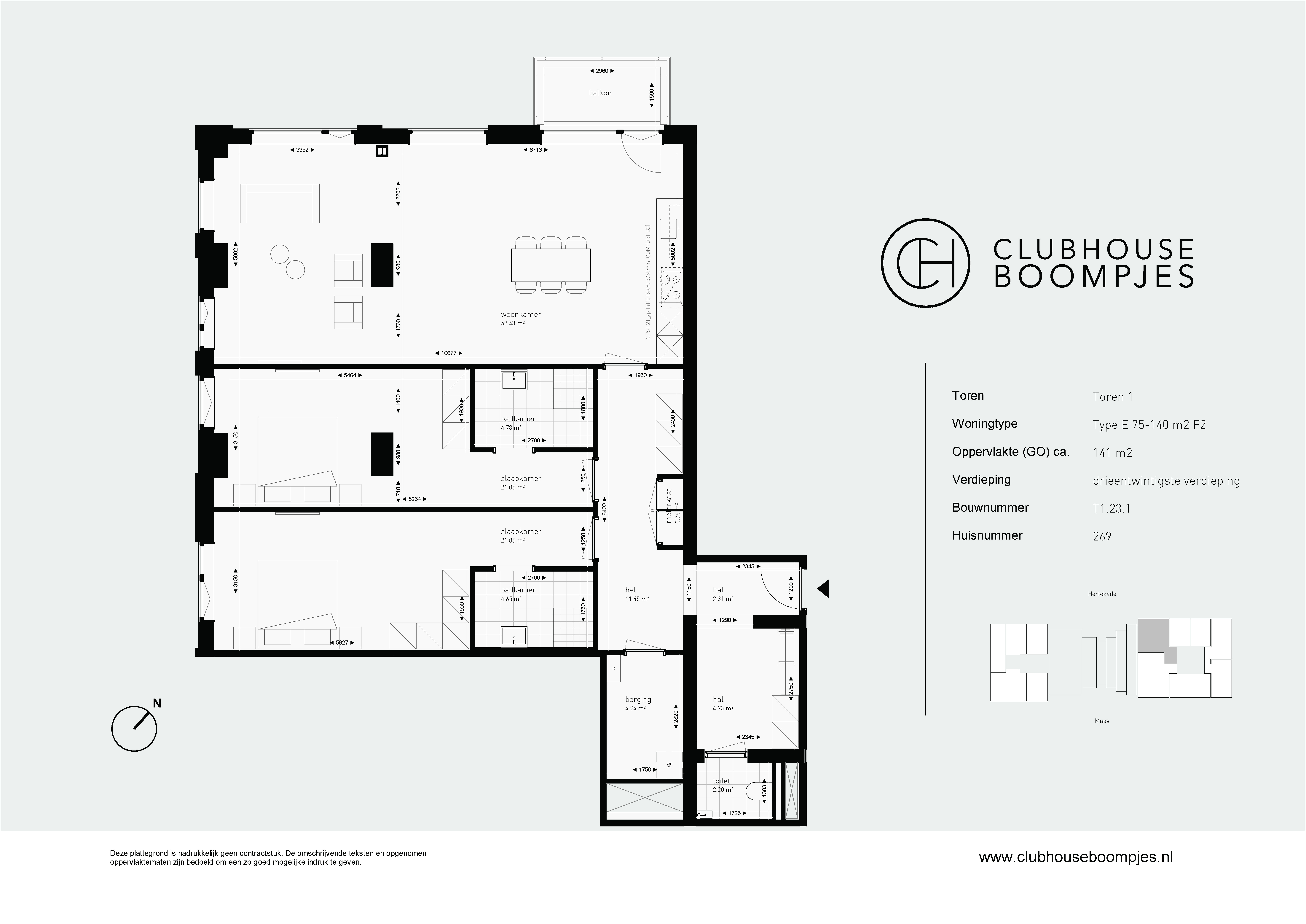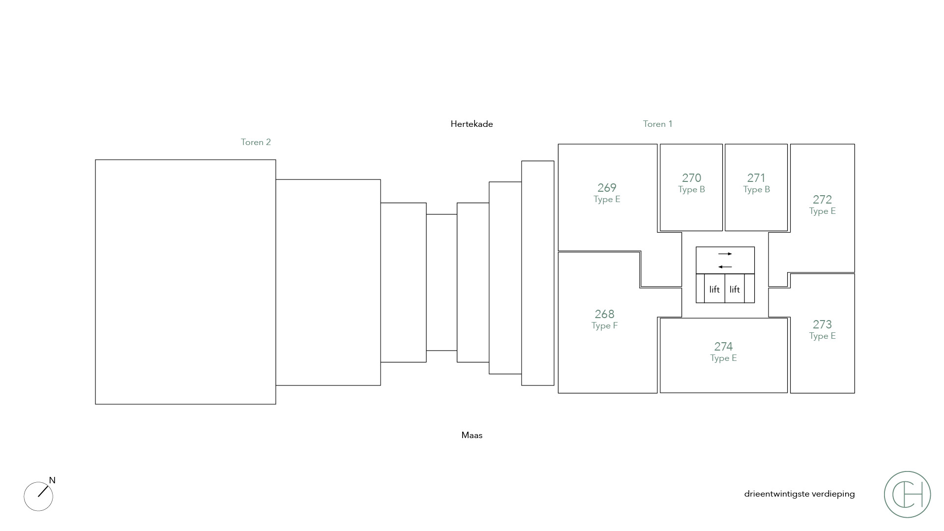 De appartementen type E variëren in grootte van 75 tot maar liefst 140 vierkante meter. Deze luxe appartementen met drie kamers zijn van alle gemakken voorzien. Met twee ruime slaapkamers met een eigen badkamer is er voldoende ruimte, privacy en comfort. De ruime woonkamer biedt plaats aan een gezellige zithoek, en de keuken is uitgerust met moderne apparatuur. In sommige appartementen is de keuken deels afgesloten, wat de mogelijkheid biedt voor een aparte eetkamer. Een mooi balkon met een prachtig uitzicht maakt deze appartementen helemaal compleet. Een ideale plek om te ontspannen na een lange werkdag of om samen met vrienden van een gezellige borrel en de prachtige skyline van Rotterdam te genieten.