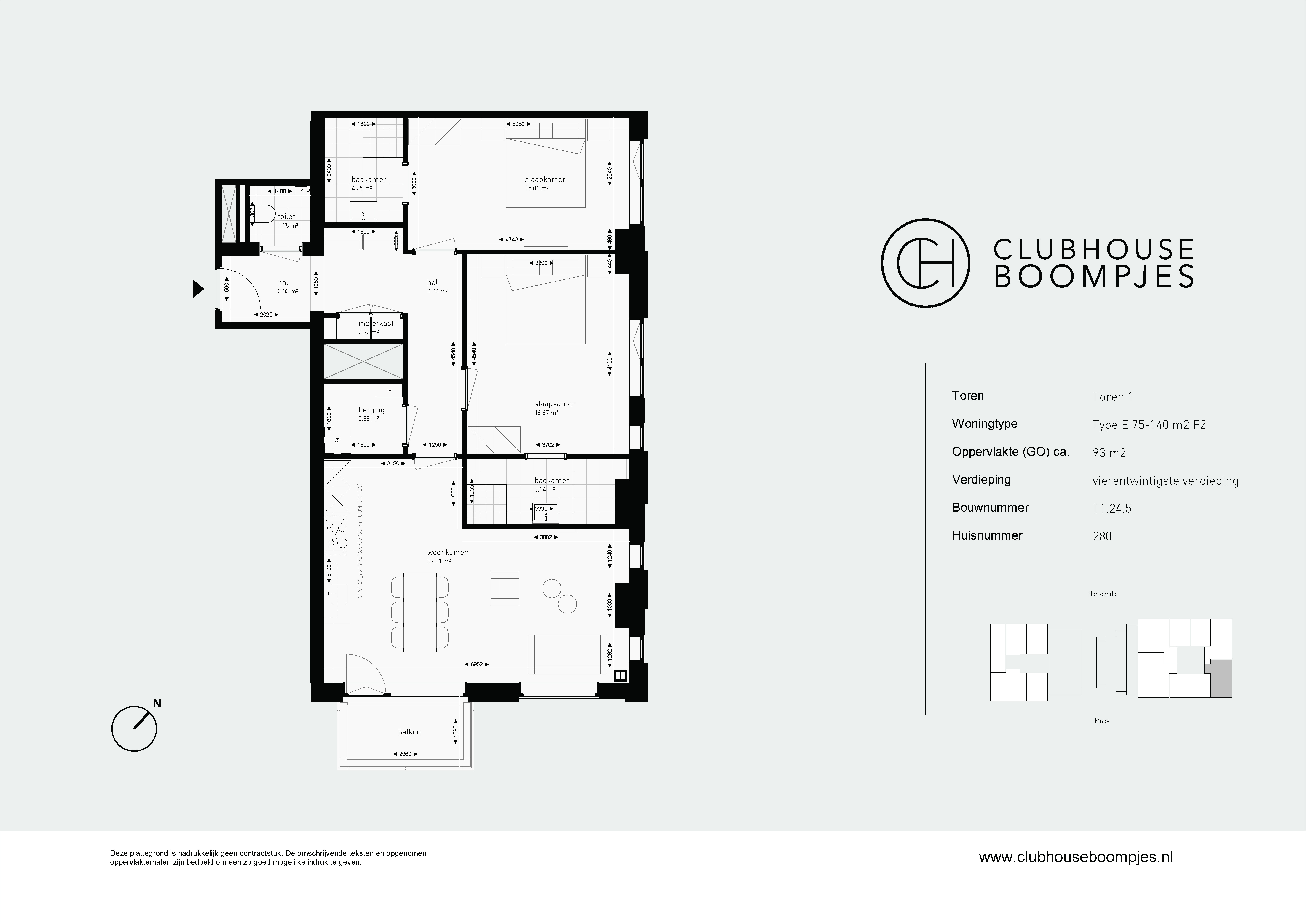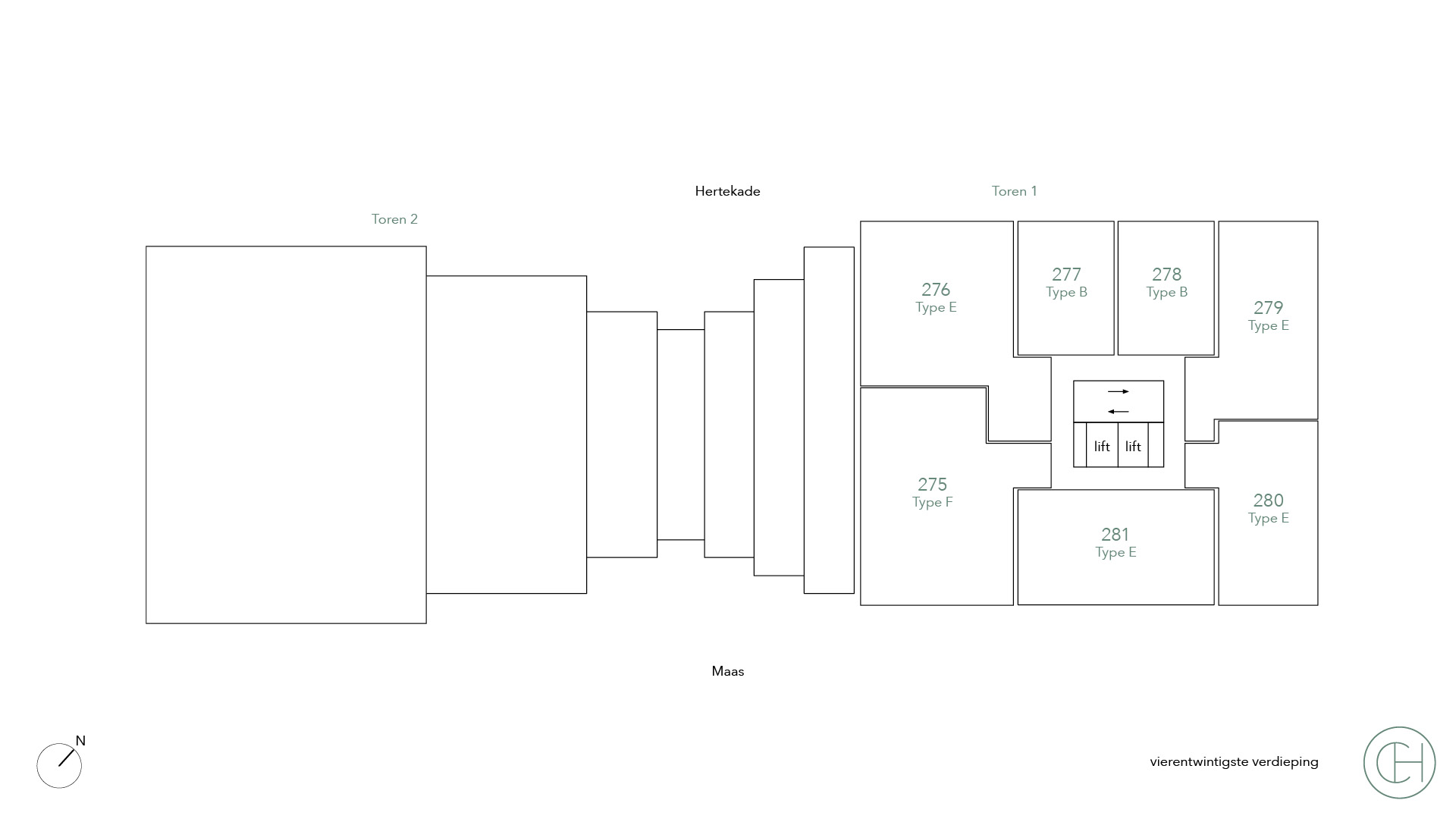 De appartementen type E variëren in grootte van 75 tot maar liefst 140 vierkante meter. Deze luxe appartementen met drie kamers zijn van alle gemakken voorzien. Met twee ruime slaapkamers met een eigen badkamer is er voldoende ruimte, privacy en comfort. De ruime woonkamer biedt plaats aan een gezellige zithoek, en de keuken is uitgerust met moderne apparatuur. In sommige appartementen is de keuken deels afgesloten, wat de mogelijkheid biedt voor een aparte eetkamer. Een mooi balkon met een prachtig uitzicht maakt deze appartementen helemaal compleet. Een ideale plek om te ontspannen na een lange werkdag of om samen met vrienden van een gezellige borrel en de prachtige skyline van Rotterdam te genieten.