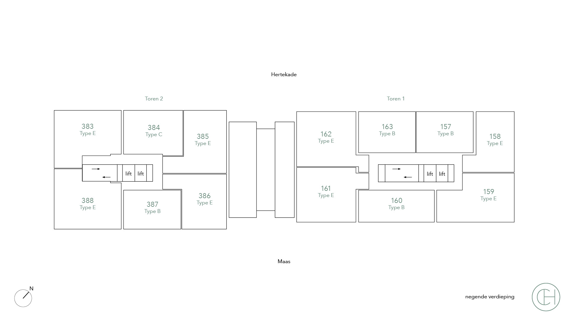 De appartementen type E variëren in grootte van 75 tot maar liefst 140 vierkante meter. Deze luxe appartementen met drie kamers zijn van alle gemakken voorzien. Met twee ruime slaapkamers met een eigen badkamer is er voldoende ruimte, privacy en comfort. De ruime woonkamer biedt plaats aan een gezellige zithoek, en de keuken is uitgerust met moderne apparatuur. In sommige appartementen is de keuken deels afgesloten, wat de mogelijkheid biedt voor een aparte eetkamer. Een mooi balkon met een prachtig uitzicht maakt deze appartementen helemaal compleet. Een ideale plek om te ontspannen na een lange werkdag of om samen met vrienden van een gezellige borrel en de prachtige skyline van Rotterdam te genieten.
