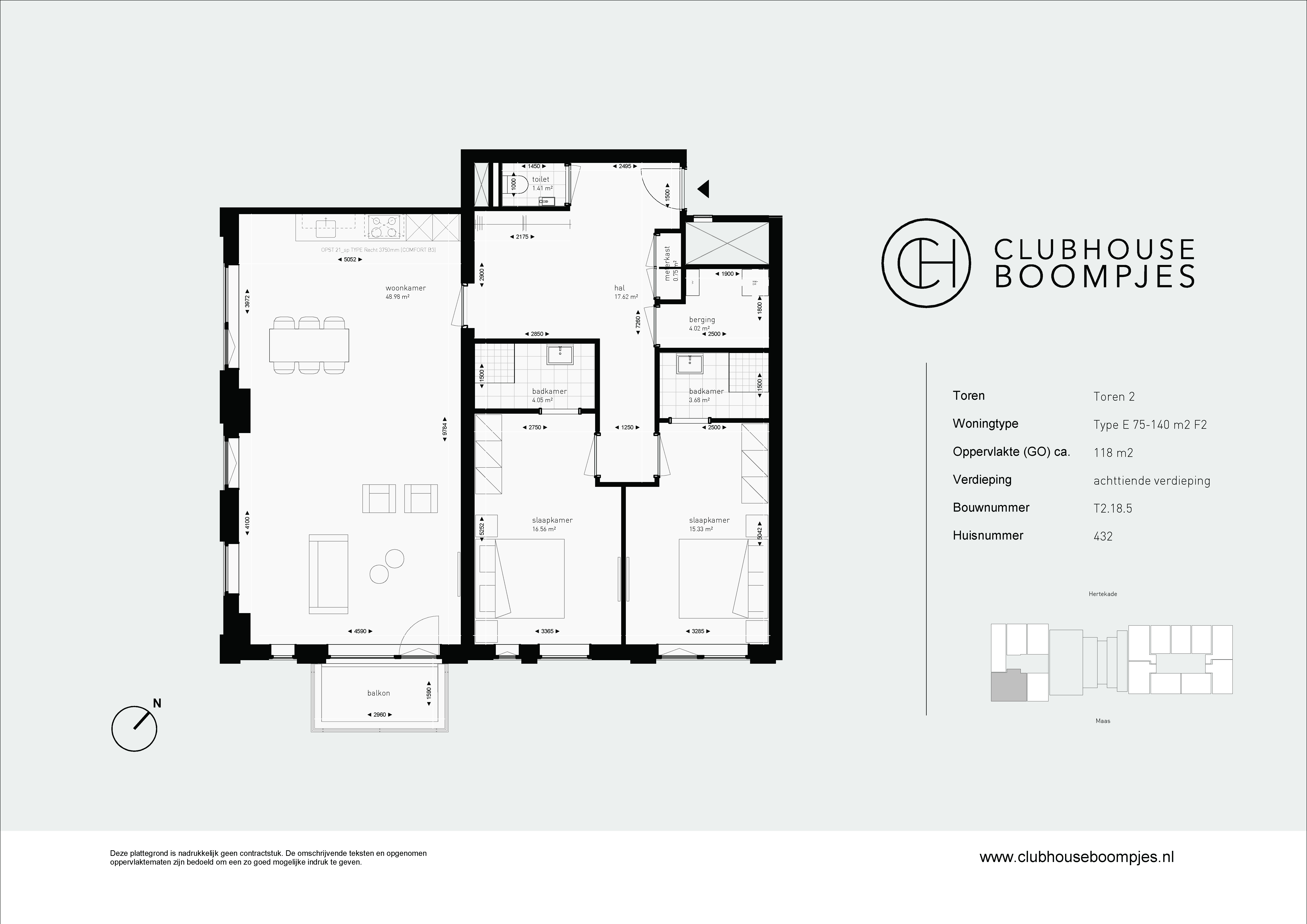 De appartementen type E variëren in grootte van 75 tot maar liefst 140 vierkante meter. Deze luxe appartementen met drie kamers zijn van alle gemakken voorzien. Met twee ruime slaapkamers met een eigen badkamer is er voldoende ruimte, privacy en comfort. De ruime woonkamer biedt plaats aan een gezellige zithoek, en de keuken is uitgerust met moderne apparatuur. In sommige appartementen is de keuken deels afgesloten, wat de mogelijkheid biedt voor een aparte eetkamer. Een mooi balkon met een prachtig uitzicht maakt deze appartementen helemaal compleet. Een ideale plek om te ontspannen na een lange werkdag of om samen met vrienden van een gezellige borrel en de prachtige skyline van Rotterdam te genieten.