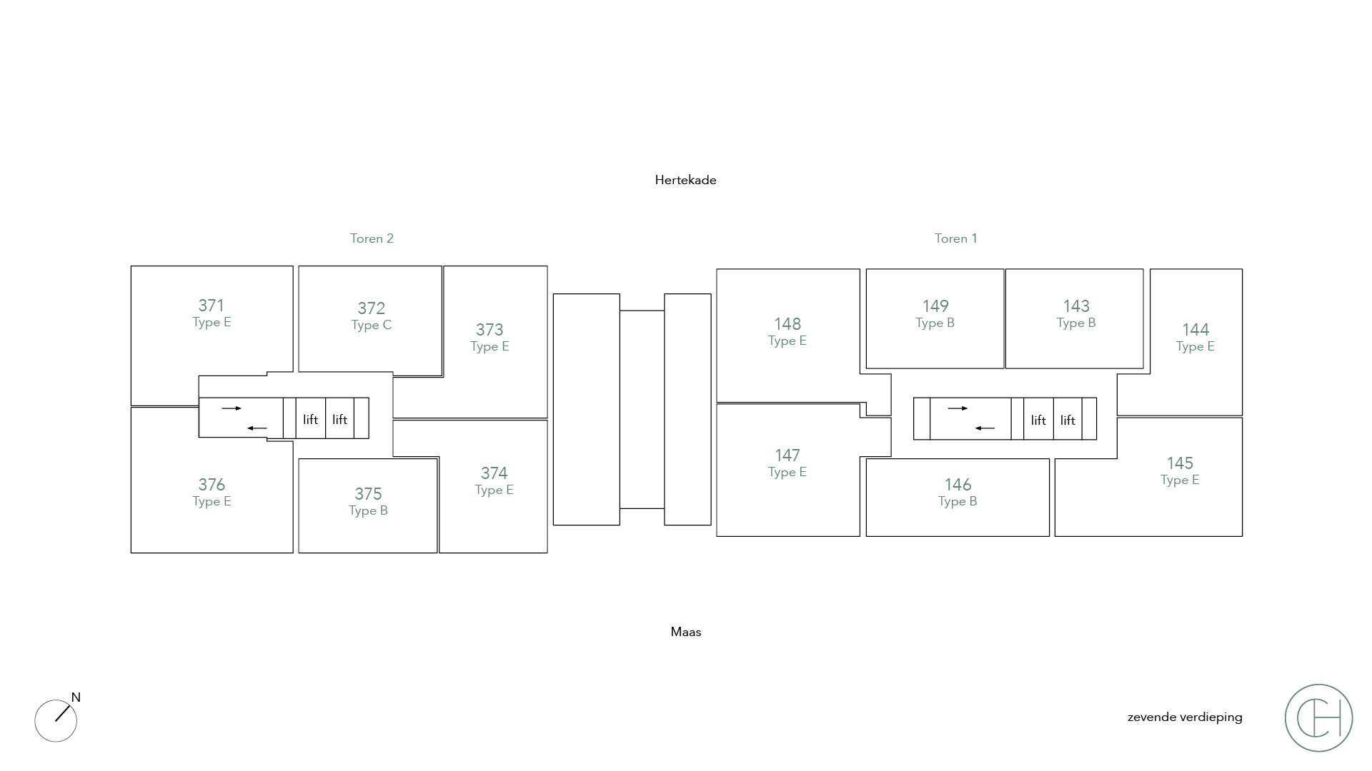 De type B appartementen zijn aangename en lichte tweekamerappartementen van 50 tot ongeveer 70 vierkante meter groot. Veel van deze appartementen bevinden zich op de hoek van een van de torens, waardoor je zowel uitzicht hebt op de Maas als op het stadscentrum. Dankzij de hoekligging geniet je hier van extra veel lichtinval. De appartementen hebben een ruime slaapkamer met een mooie badkamer, inclusief een moderne douche en wastafel. De woonkamer en open keuken vormen één geheel, met voldoende ruimte voor een comfortabele zithoek en een gezellige eethoek. En vanaf je eigen balkon of loggia geniet je hier altijd van een prachtig uitzicht!