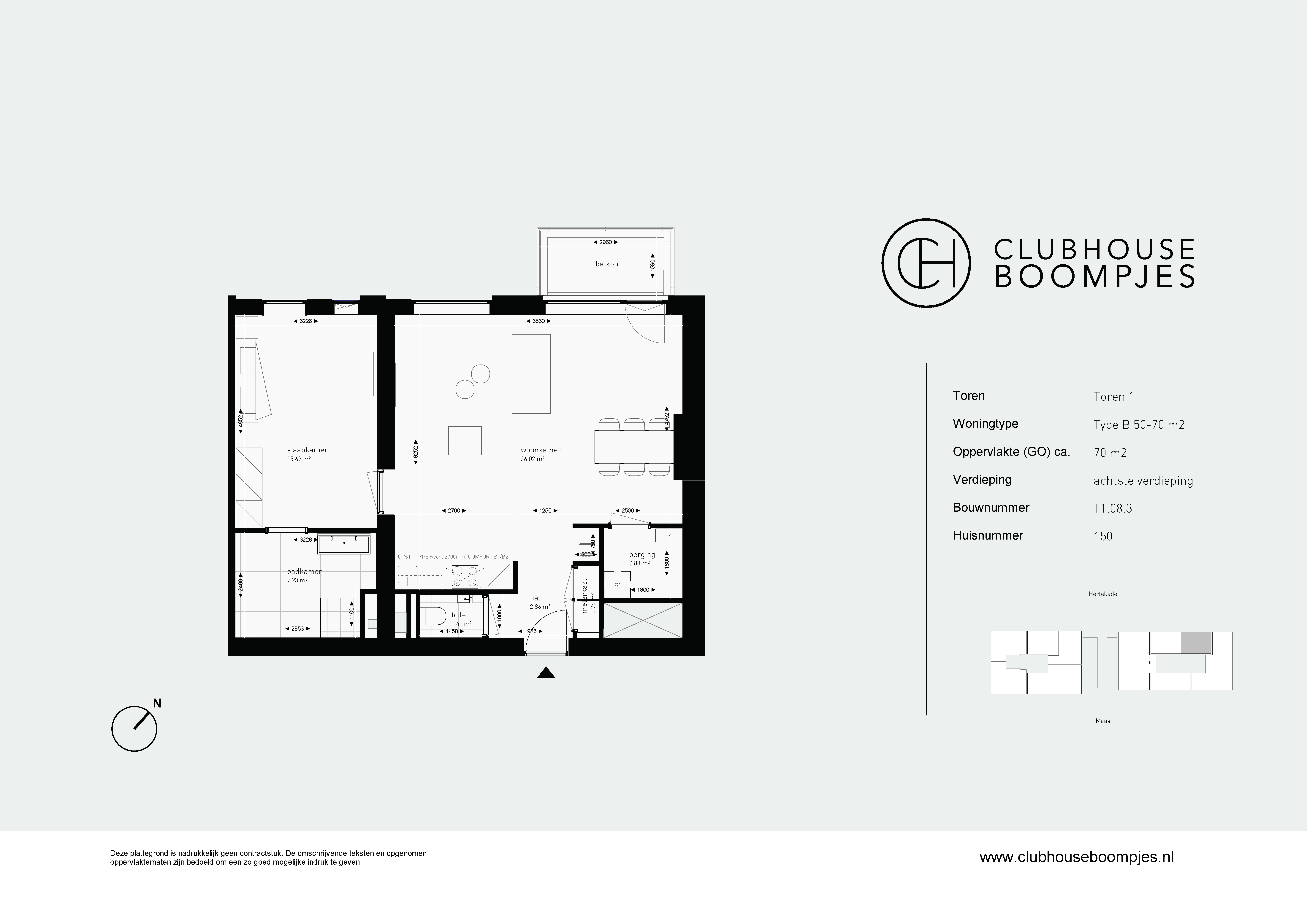 De type B appartementen zijn aangename en lichte tweekamerappartementen van 50 tot ongeveer 70 vierkante meter groot. Veel van deze appartementen bevinden zich op de hoek van een van de torens, waardoor je zowel uitzicht hebt op de Maas als op het stadscentrum. Dankzij de hoekligging geniet je hier van extra veel lichtinval. De appartementen hebben een ruime slaapkamer met een mooie badkamer, inclusief een moderne douche en wastafel. De woonkamer en open keuken vormen één geheel, met voldoende ruimte voor een comfortabele zithoek en een gezellige eethoek. En vanaf je eigen balkon of loggia geniet je hier altijd van een prachtig uitzicht!