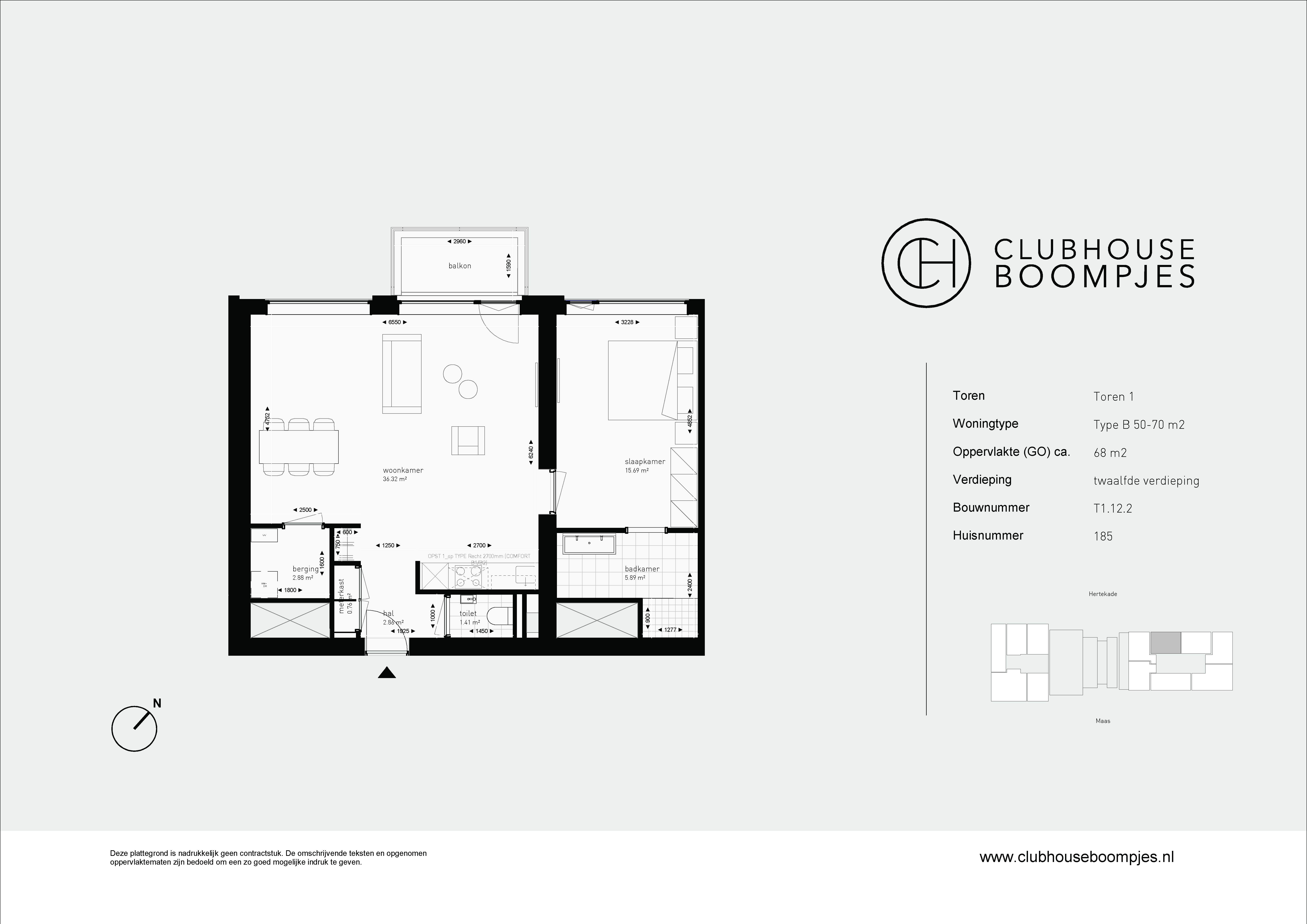De type B appartementen zijn aangename en lichte tweekamerappartementen van 50 tot ongeveer 70 vierkante meter groot. Veel van deze appartementen bevinden zich op de hoek van een van de torens, waardoor je zowel uitzicht hebt op de Maas als op het stadscentrum. Dankzij de hoekligging geniet je hier van extra veel lichtinval. De appartementen hebben een ruime slaapkamer met een mooie badkamer, inclusief een moderne douche en wastafel. De woonkamer en open keuken vormen één geheel, met voldoende ruimte voor een comfortabele zithoek en een gezellige eethoek. En vanaf je eigen balkon of loggia geniet je hier altijd van een prachtig uitzicht!