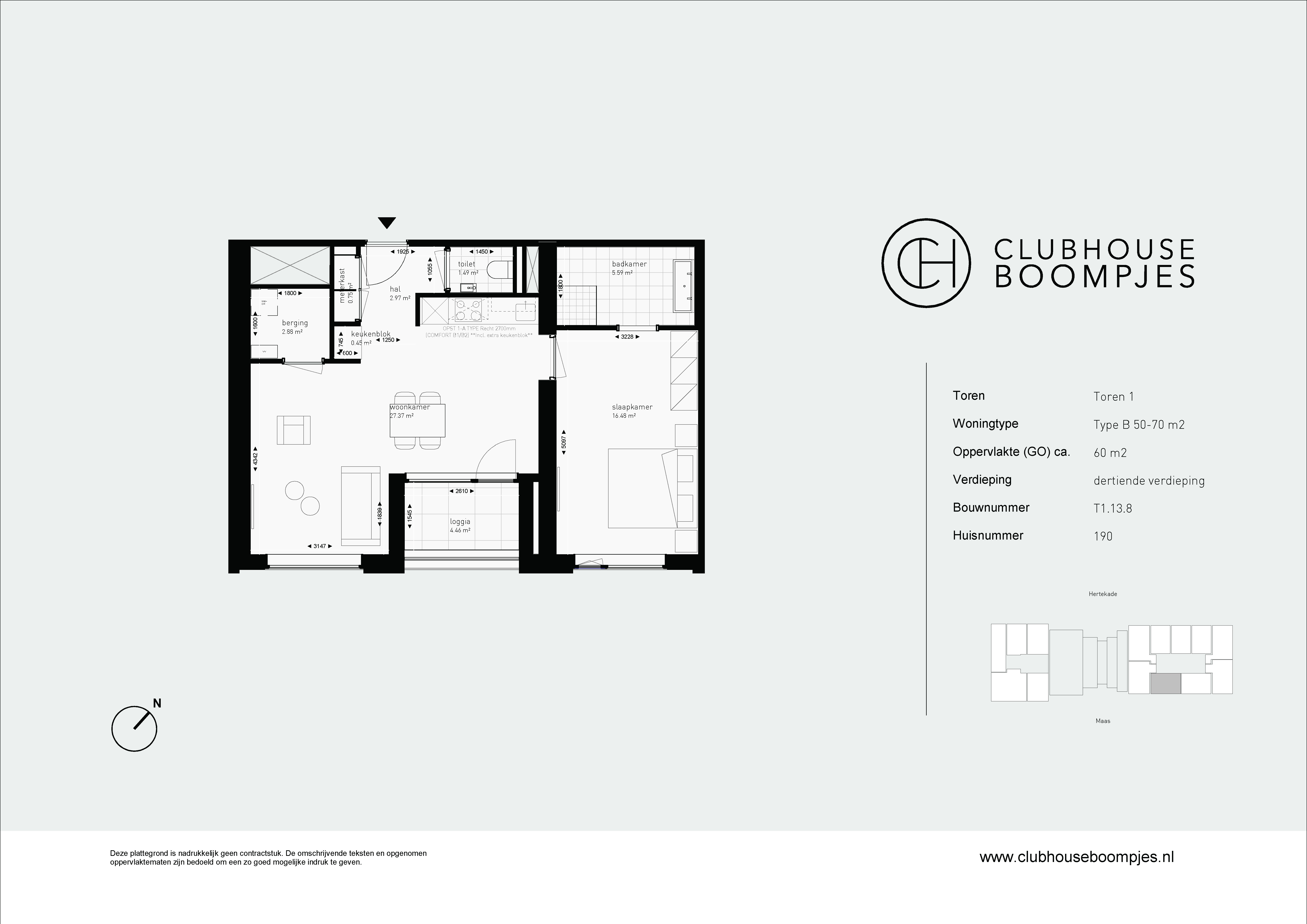 De type B appartementen zijn aangename en lichte tweekamerappartementen van 50 tot ongeveer 70 vierkante meter groot. Veel van deze appartementen bevinden zich op de hoek van een van de torens, waardoor je zowel uitzicht hebt op de Maas als op het stadscentrum. Dankzij de hoekligging geniet je hier van extra veel lichtinval. De appartementen hebben een ruime slaapkamer met een mooie badkamer, inclusief een moderne douche en wastafel. De woonkamer en open keuken vormen één geheel, met voldoende ruimte voor een comfortabele zithoek en een gezellige eethoek. En vanaf je eigen balkon of loggia geniet je hier altijd van een prachtig uitzicht!