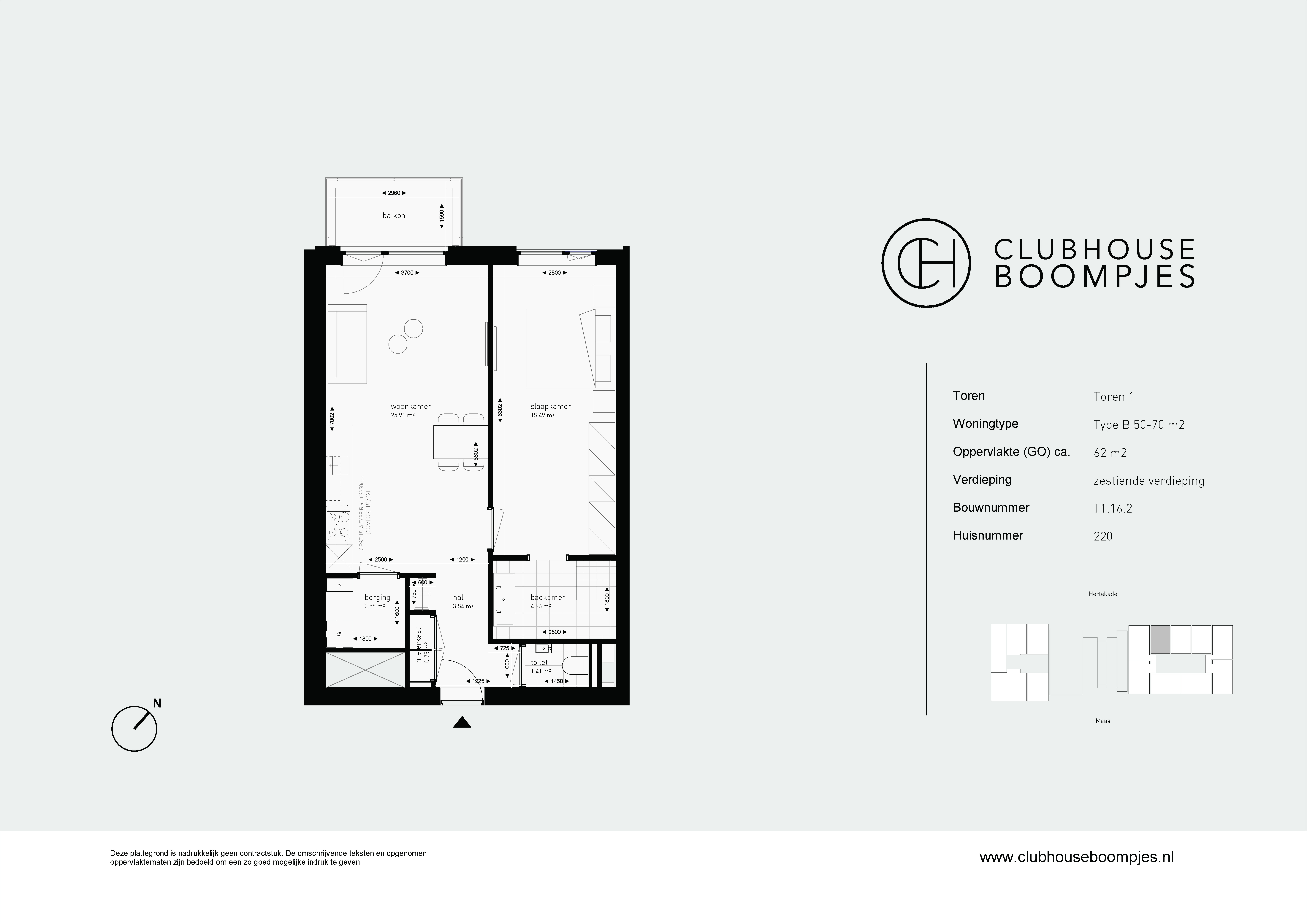 De type B appartementen zijn aangename en lichte tweekamerappartementen van 50 tot ongeveer 70 vierkante meter groot. Veel van deze appartementen bevinden zich op de hoek van een van de torens, waardoor je zowel uitzicht hebt op de Maas als op het stadscentrum. Dankzij de hoekligging geniet je hier van extra veel lichtinval. De appartementen hebben een ruime slaapkamer met een mooie badkamer, inclusief een moderne douche en wastafel. De woonkamer en open keuken vormen één geheel, met voldoende ruimte voor een comfortabele zithoek en een gezellige eethoek. En vanaf je eigen balkon of loggia geniet je hier altijd van een prachtig uitzicht!