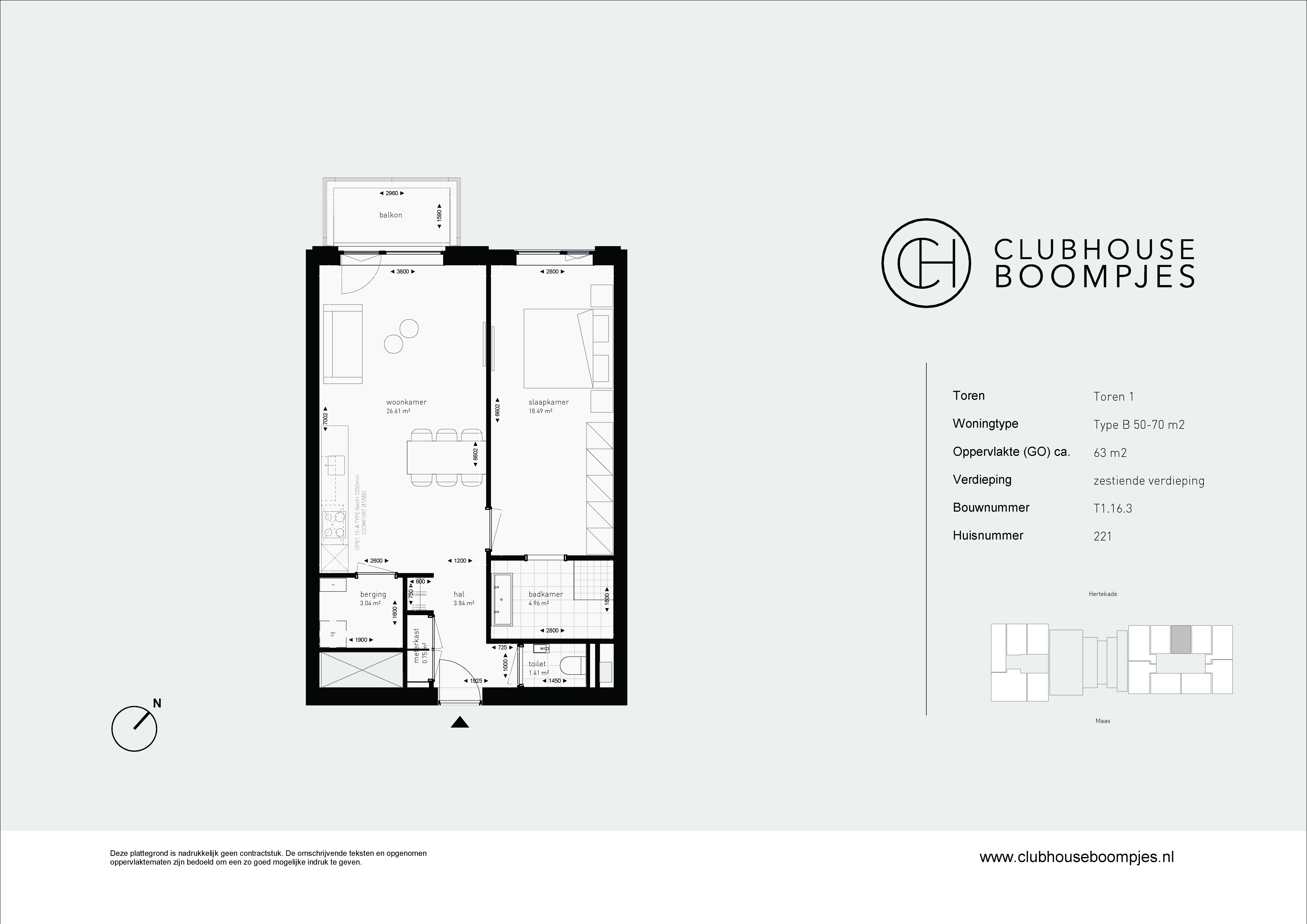 De type B appartementen zijn aangename en lichte tweekamerappartementen van 50 tot ongeveer 70 vierkante meter groot. Veel van deze appartementen bevinden zich op de hoek van een van de torens, waardoor je zowel uitzicht hebt op de Maas als op het stadscentrum. Dankzij de hoekligging geniet je hier van extra veel lichtinval. De appartementen hebben een ruime slaapkamer met een mooie badkamer, inclusief een moderne douche en wastafel. De woonkamer en open keuken vormen één geheel, met voldoende ruimte voor een comfortabele zithoek en een gezellige eethoek. En vanaf je eigen balkon of loggia geniet je hier altijd van een prachtig uitzicht!