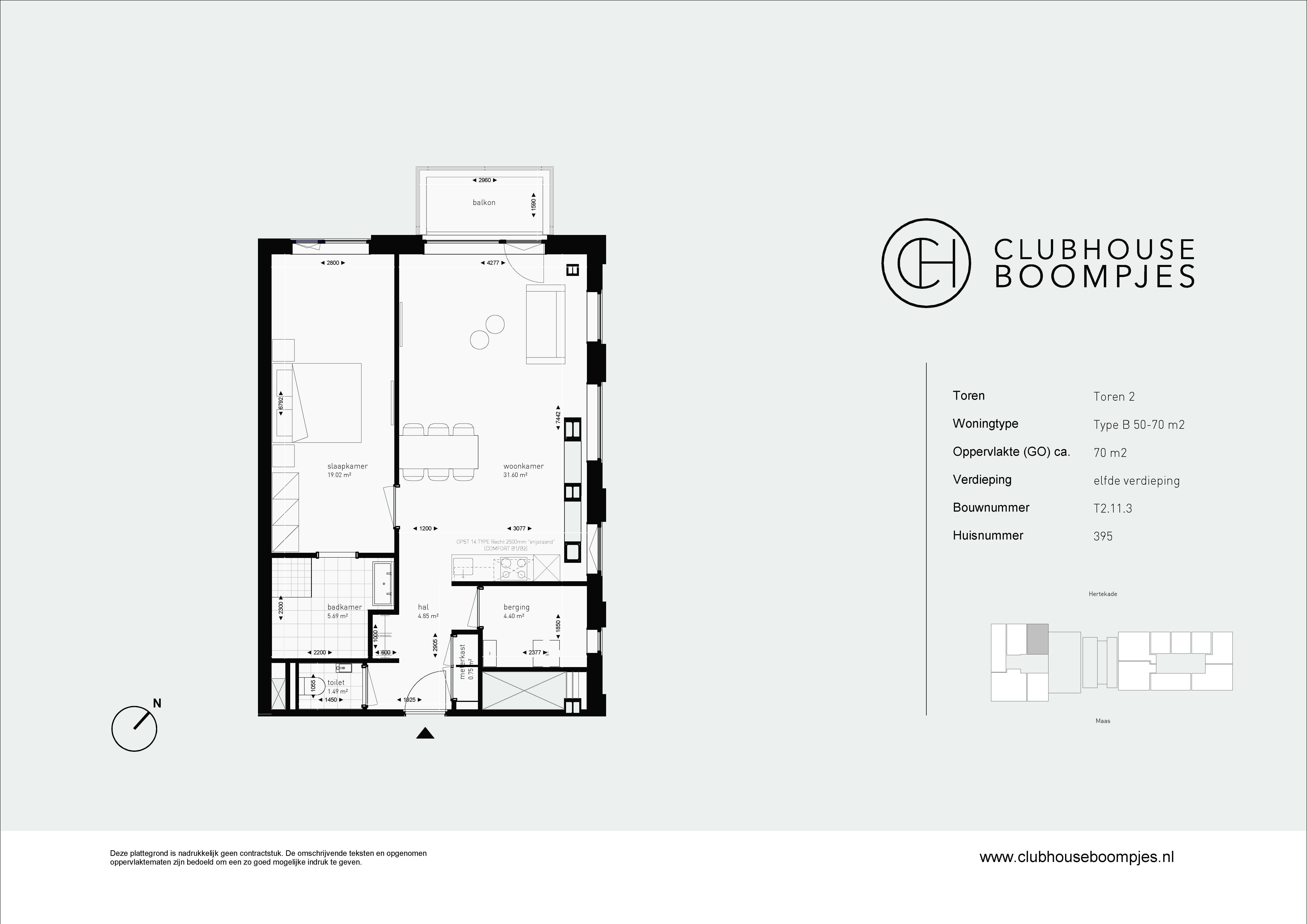 De type B appartementen zijn aangename en lichte tweekamerappartementen van 50 tot ongeveer 70 vierkante meter groot. Veel van deze appartementen bevinden zich op de hoek van een van de torens, waardoor je zowel uitzicht hebt op de Maas als op het stadscentrum. Dankzij de hoekligging geniet je hier van extra veel lichtinval. De appartementen hebben een ruime slaapkamer met een mooie badkamer, inclusief een moderne douche en wastafel. De woonkamer en open keuken vormen één geheel, met voldoende ruimte voor een comfortabele zithoek en een gezellige eethoek. En vanaf je eigen balkon of loggia geniet je hier altijd van een prachtig uitzicht!