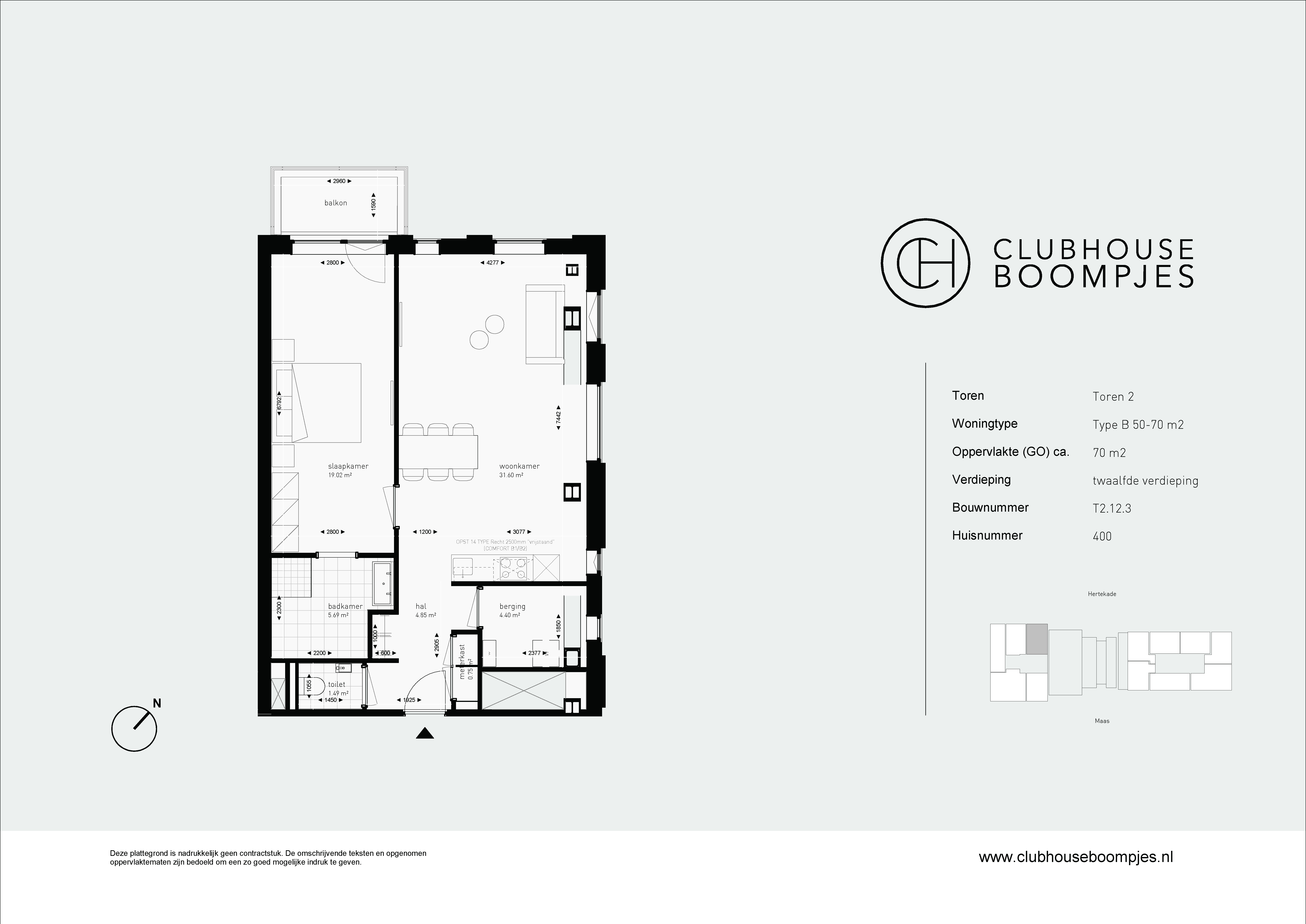 De type B appartementen zijn aangename en lichte tweekamerappartementen van 50 tot ongeveer 70 vierkante meter groot. Veel van deze appartementen bevinden zich op de hoek van een van de torens, waardoor je zowel uitzicht hebt op de Maas als op het stadscentrum. Dankzij de hoekligging geniet je hier van extra veel lichtinval. De appartementen hebben een ruime slaapkamer met een mooie badkamer, inclusief een moderne douche en wastafel. De woonkamer en open keuken vormen één geheel, met voldoende ruimte voor een comfortabele zithoek en een gezellige eethoek. En vanaf je eigen balkon of loggia geniet je hier altijd van een prachtig uitzicht!